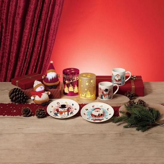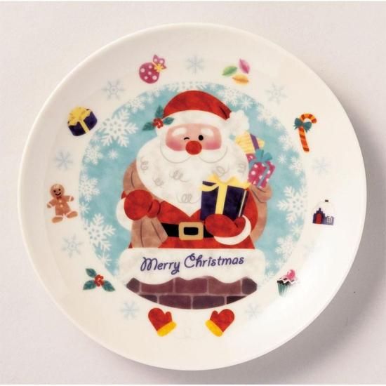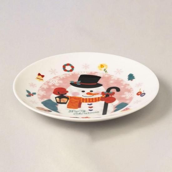 クリスマスパーティに! かわいいプレート。クリスマスを演出してくれる、スノーマンとサンタが描かれたかわいい食器。