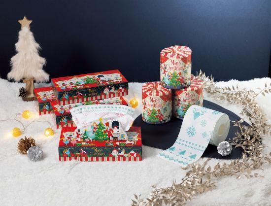 夢いっぱいのクリスマスになりますように!クリスマスデザインのボックスティッシュです。