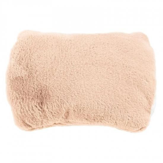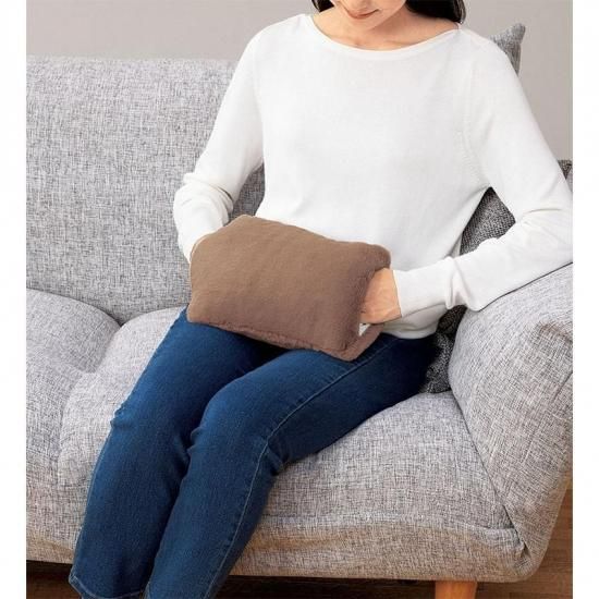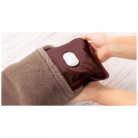 お湯不要の蓄熱式湯たんぽ。両手を入れることができるふわふわカバー付きの湯たんぽです。