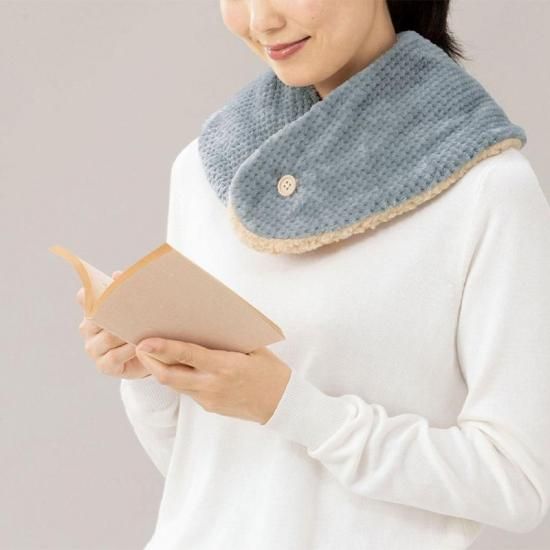 デザイン性のあるカラーボア×内側ボア。電源を入れたらすぐに温めてくれる。首から肩にかけてあたたかいネックウォーマー。おうち時間や就寝前におすすめです。