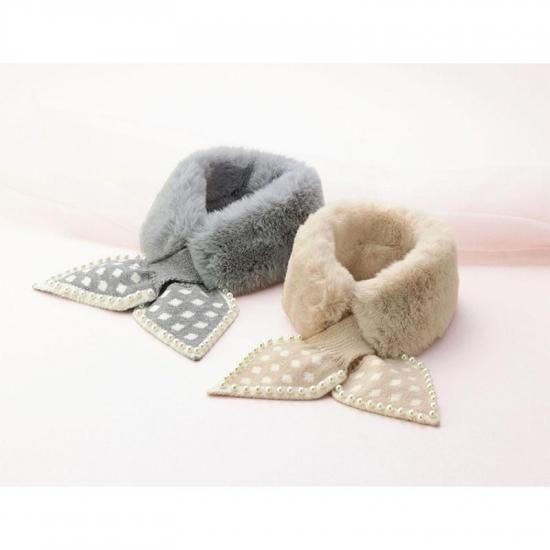 パール調のビジューがアクセント。華やかなスタイルにしてくれるおしゃれカラーのふわふわファーティペットです。