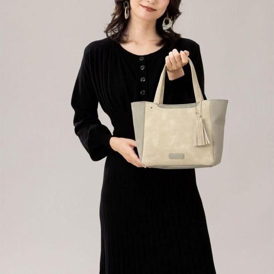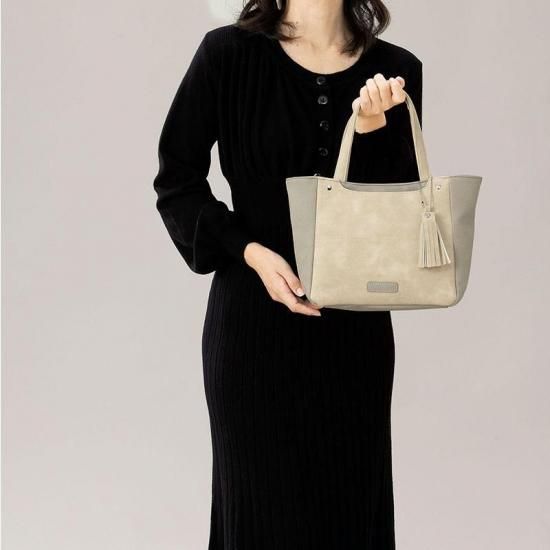 タッセルがアクセントになった上品なハンドバッグ。機能的なポケットがあり使い勝手も抜群です。