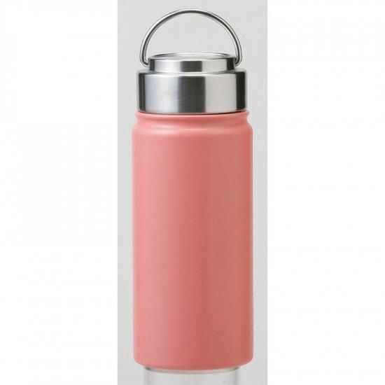 持ち運びしやすい持ち手付き保冷温タイプのステンレスボトルです。