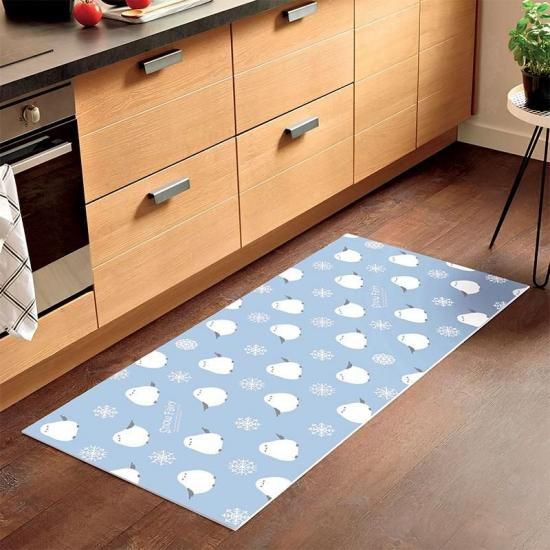 雪の妖精シマエナガ柄がかわいい!ソフトなクッション性のキッチンマット。サッとひと拭きでいつでも清潔。抗菌・防臭仕様