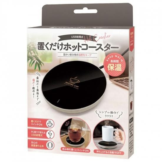 温かい飲み物の温度をキープしてくれるコースター。カップを置くとスイッチが入り保温機能が作動します。