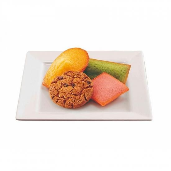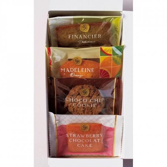 商品サイズ:セット内容量/4個(ストロベリーショコラケーキ、オレンジマドレーヌ、ピスタチオフィナンシェ、チョコチップクッキー)
