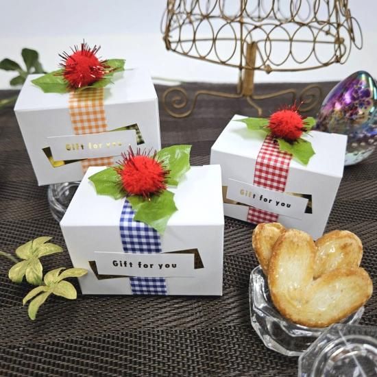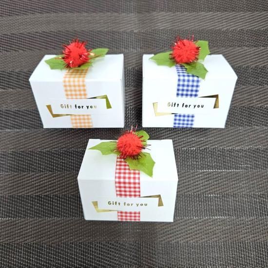 ボックスの上に柊と赤いポンポンがちょこんと乗った、可愛らしいパッケージのプチギフト。