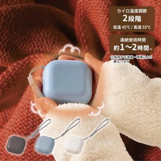 温度は45度と55度の2段階調整が可能で、カイロは両面温まるので寒い日にもぴったりです。