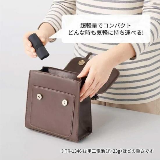 超薄手・超軽量かつ、ハンドル部分のゴムで止めていただくことで極小サイズになり、