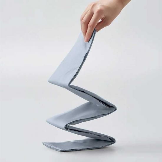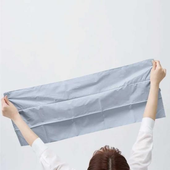 プリーツ加工によって簡単に折り畳むことが可能で、薄くて軽く、耐久性もあり、手のひらサイズにコンパクトに収納する事ができる。
