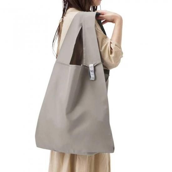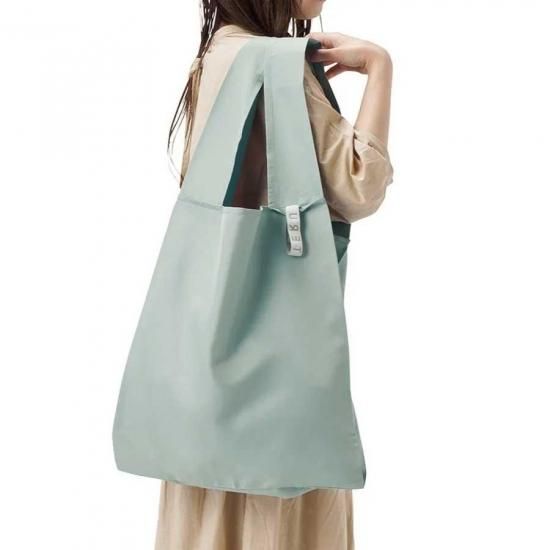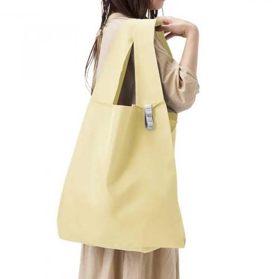ゴムバンドでくるりとコンパクトにまとめて持ち運びができるエコバッグです。